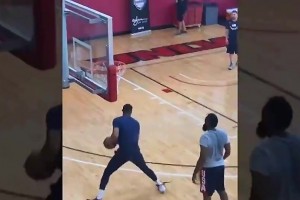 名场面:威少当着哈登的面,滑稽模仿他的后撤步!登哥都懵了