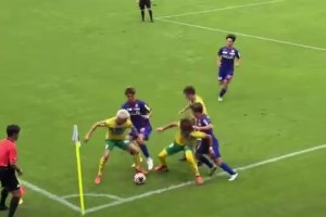 足球场秒变橄榄球!名场面:球队多人合力拖时间!